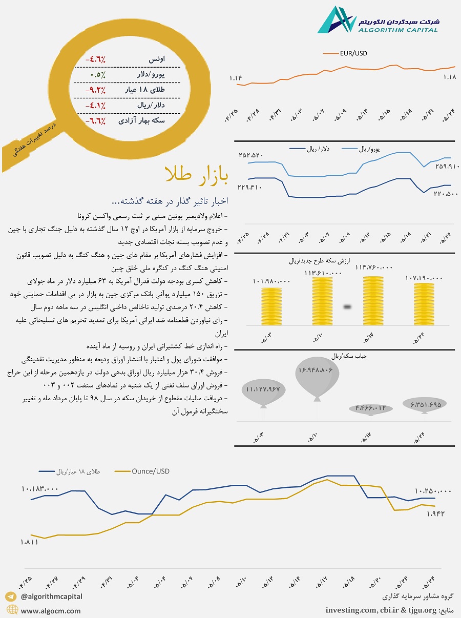 کاهش بی سابقه اونس جهانی در پی اعلام پوتین مبنی بر ثبت رسمی واکسن کرونا