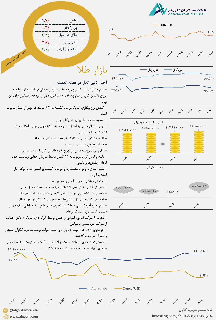 نوسان محتاطانه طلای جهانی در پی انتشار اخبار مثبت از وضعیت اقتصاد امریکا و پاندمی ویروس کرونا