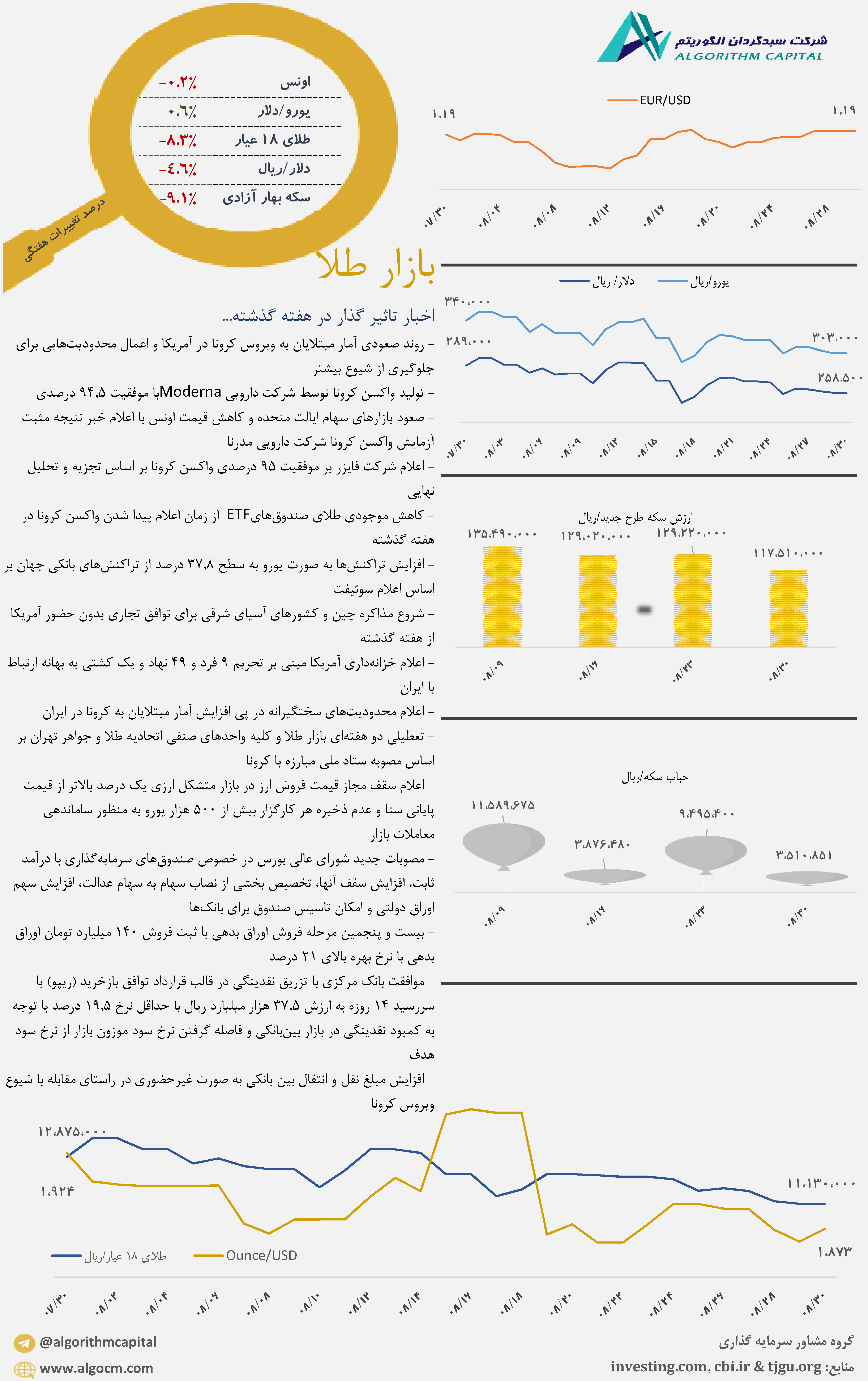 کاهش قیمت سکه و طلا در پی کاهش نرخ دلار و کاهش قیمت طلای جهانی