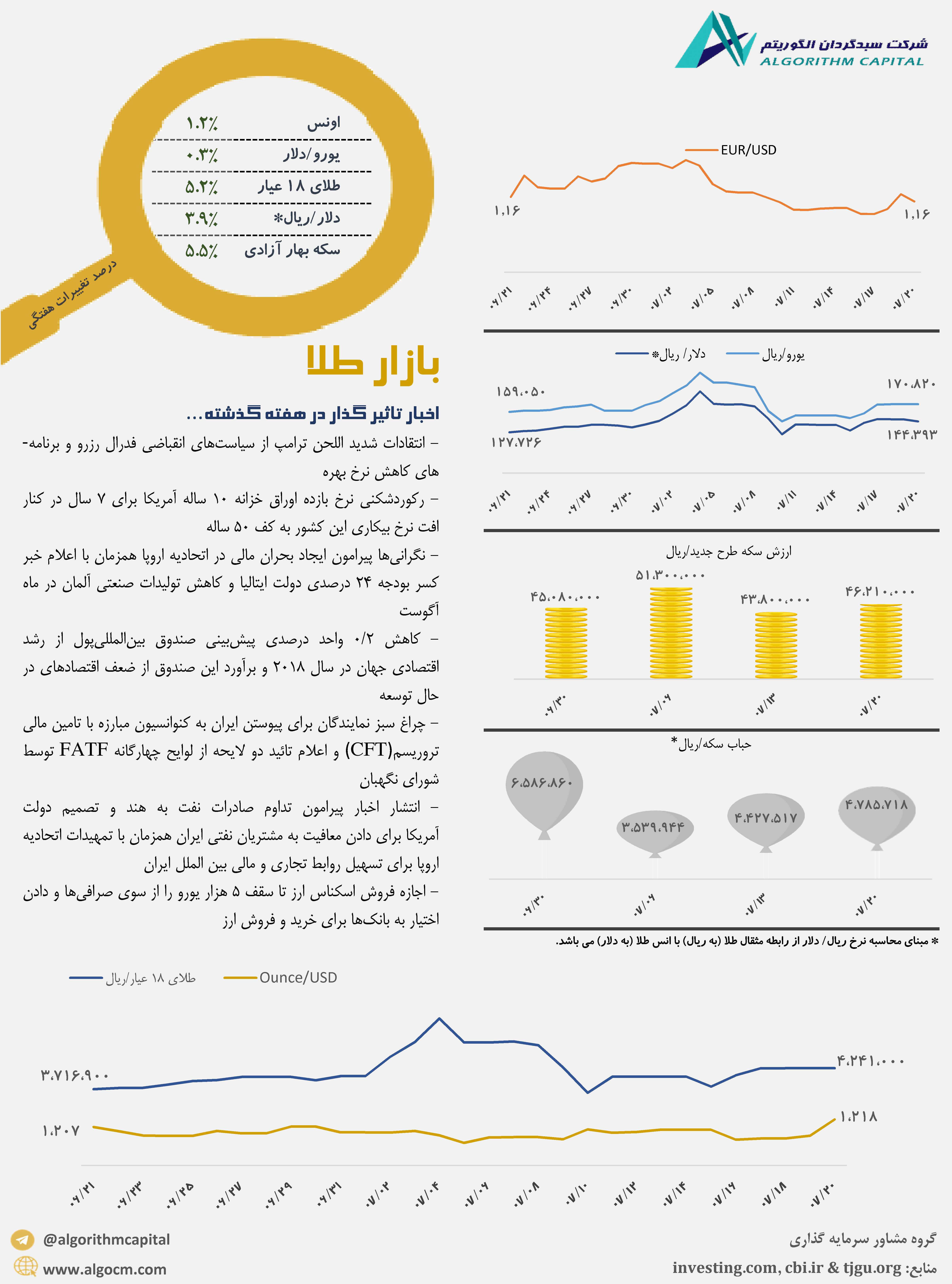 اینفوگرافیک بازگشت قیمت ها در بازارهای طلا و ارز به مدار صعودی