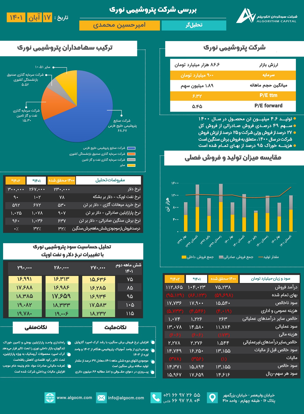 شرکت پتروشیمی نوری، یکی از زیرمجموعههای تولیدی شرکت صنایع پتروشیمی فارس است. این شرکت در سال 1377 بهصورت سهامی خاص تأسیس و در سال ۱۳۸۶، در بندر عسلویه - منطقه ویژه انرژی پارس، به بهرهبرداری رسید و در سال 1392 از سهامی خاص به سهامی عام تبدیل گردید. نوری چهارمین تولیدکننده عمده محصولات آروماتیک در کشور است و با ظرفیت اسمی 4.5 میلیون تن در رده اول صنعت تولید مواد آروماتیک کشور قرار دارد. محصولات شرکت از مهمترین خوراکهای واحدهای الفینی و همچنین صنایع پالایشگاهی، پتروشیمیایی و سوخت محسوب میشوند.